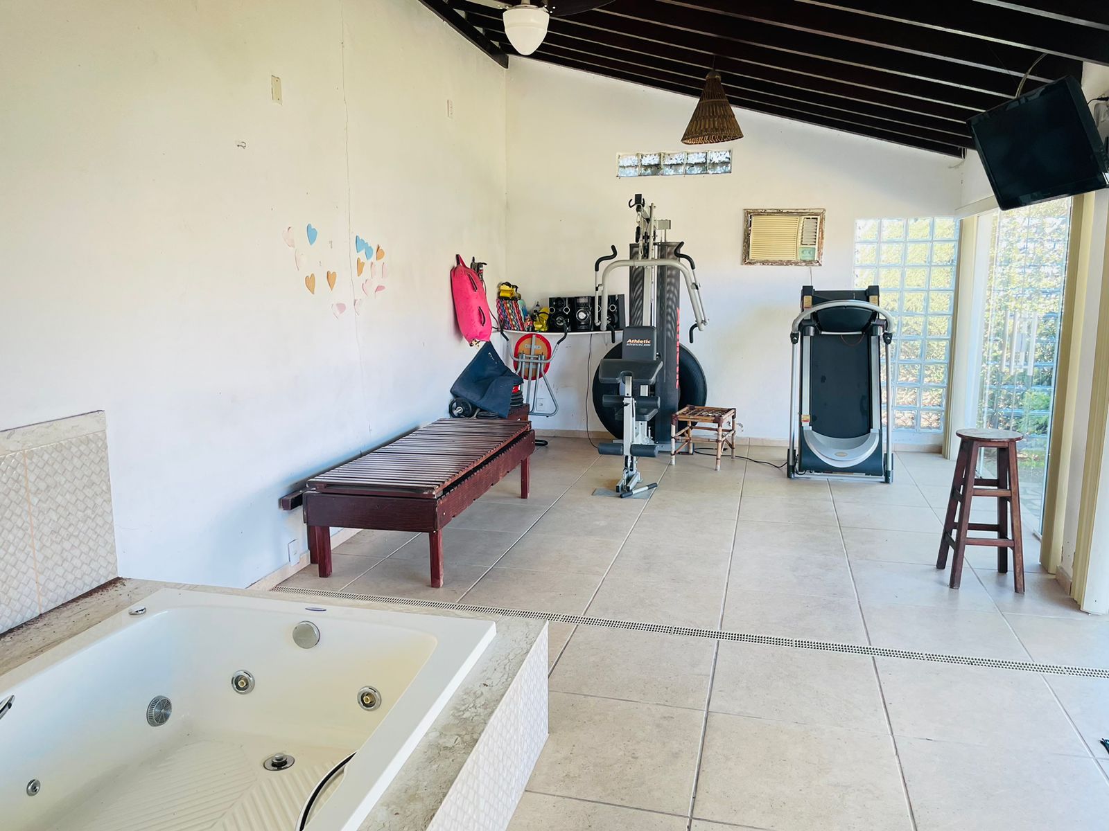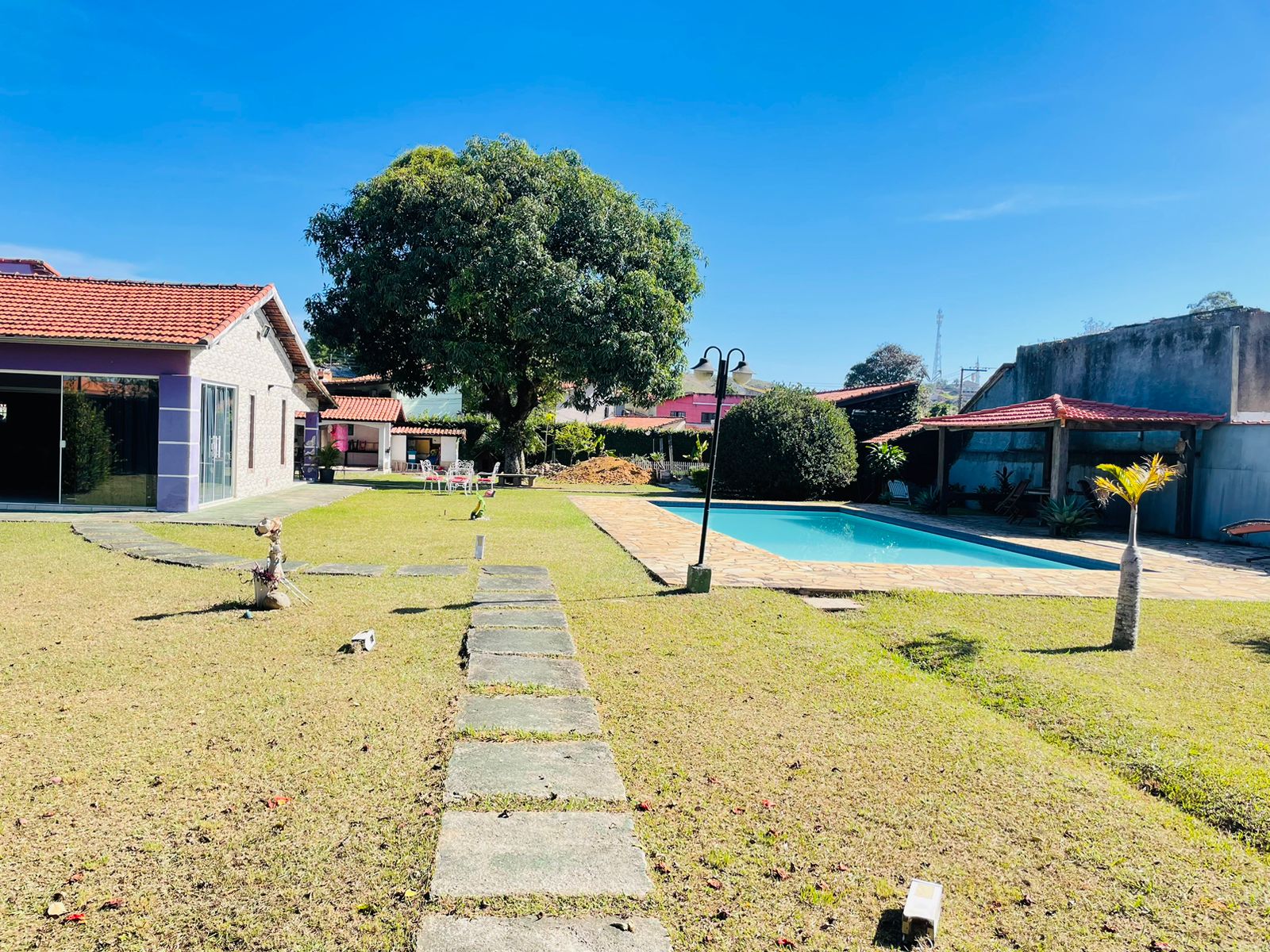 Casa com 3 quartos sendo 1 suíte, sala ampla, sala de jantar, cozinha planejada, 2 banheiros social. Sistema de câmeras integrado, porteiro eletrônico digital, área de churrasqueira, fogão à lenha, forno e fogão industrial com um amplo espaço, sauna, academia de ginástica, hidromassagem, piscina com pergolado, sala de cinema, portões eletrônicos, jacuzzi de água quente, área com banco e fogueira , garagem para 2 carros . Terreno com 2.000m².