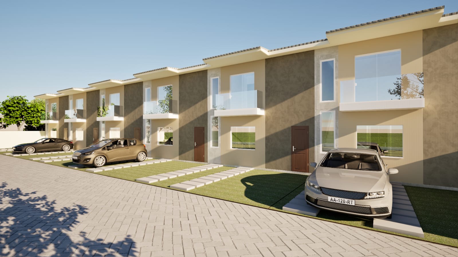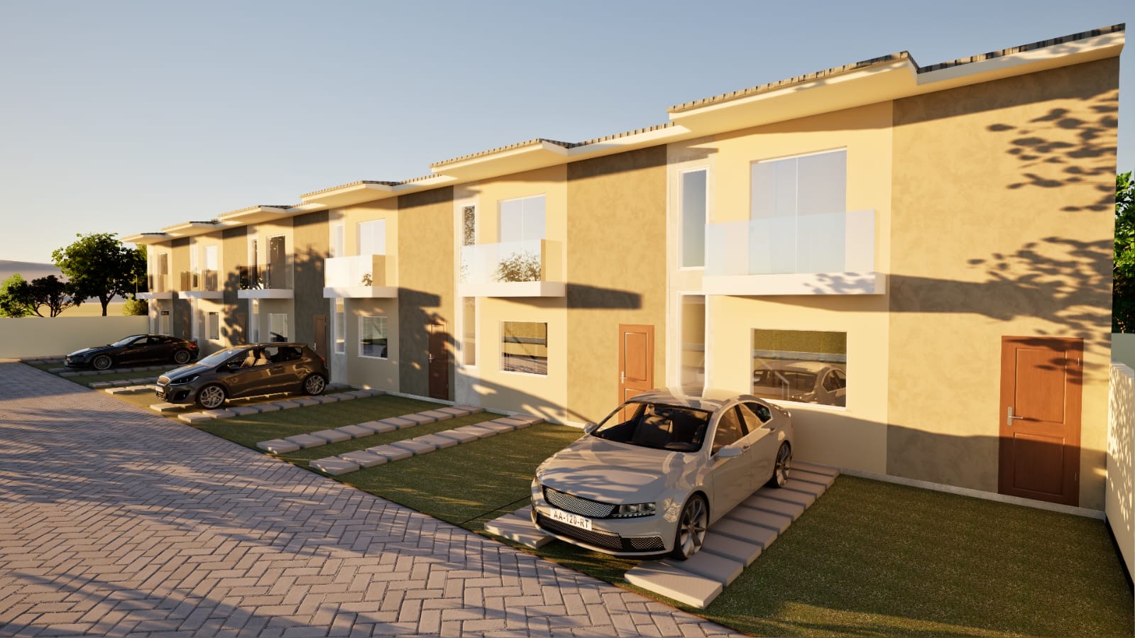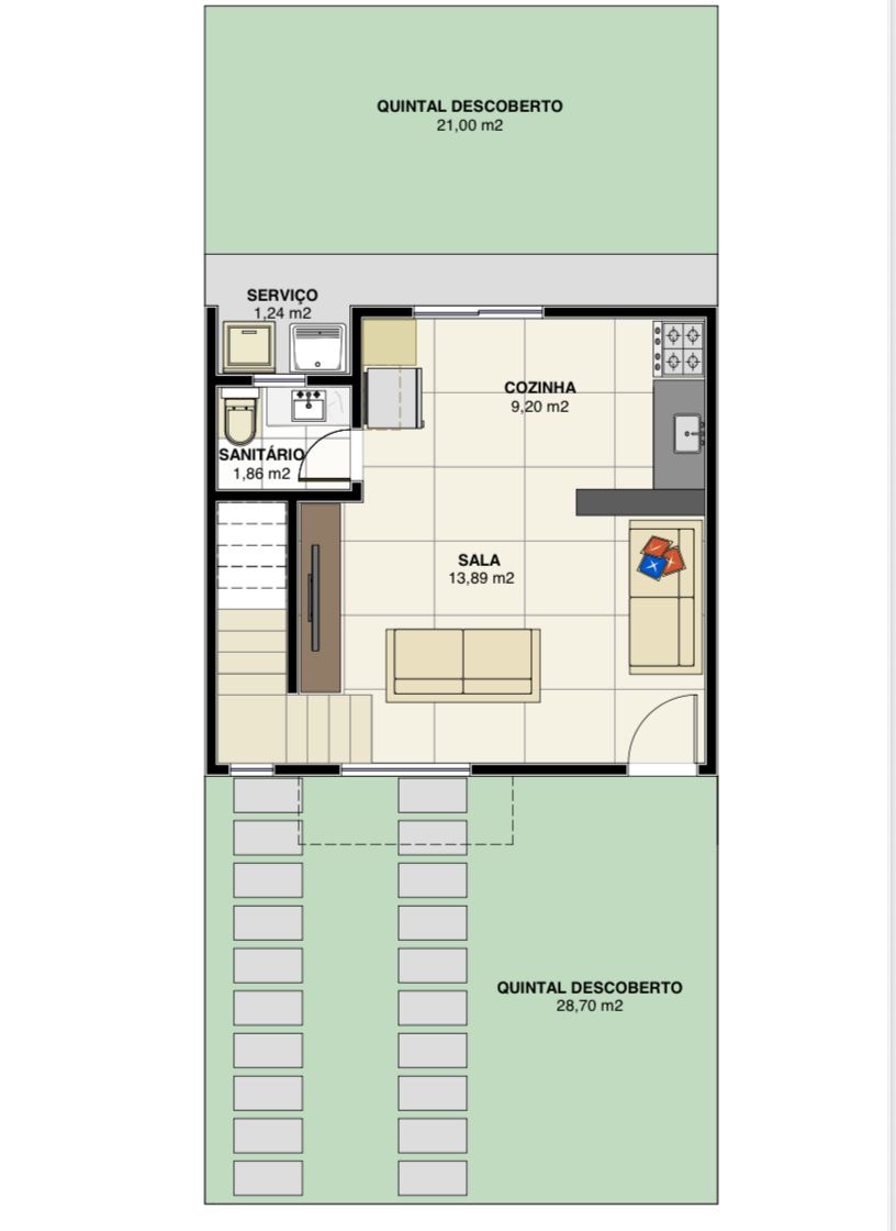 Serão 18 casas dúplex de aproximadamente 68m2 cada, dividida em 3 etapas.