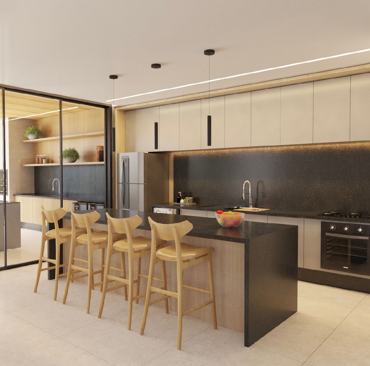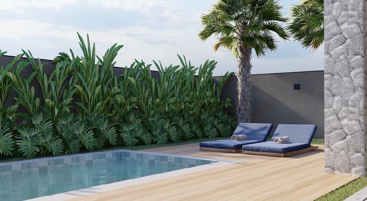 3 suítes sendo uma master, 02 vagas amplas de garagem, amplo depósito, hall de entrada, ampla sala de estar com home office, sala de jantar, cozinha conceito aberto, área de serviço, lavabo, ampla varanda gourmet com churrasqueira, corredor lateral de acesso ao quintal, enorme quintal com piscina.