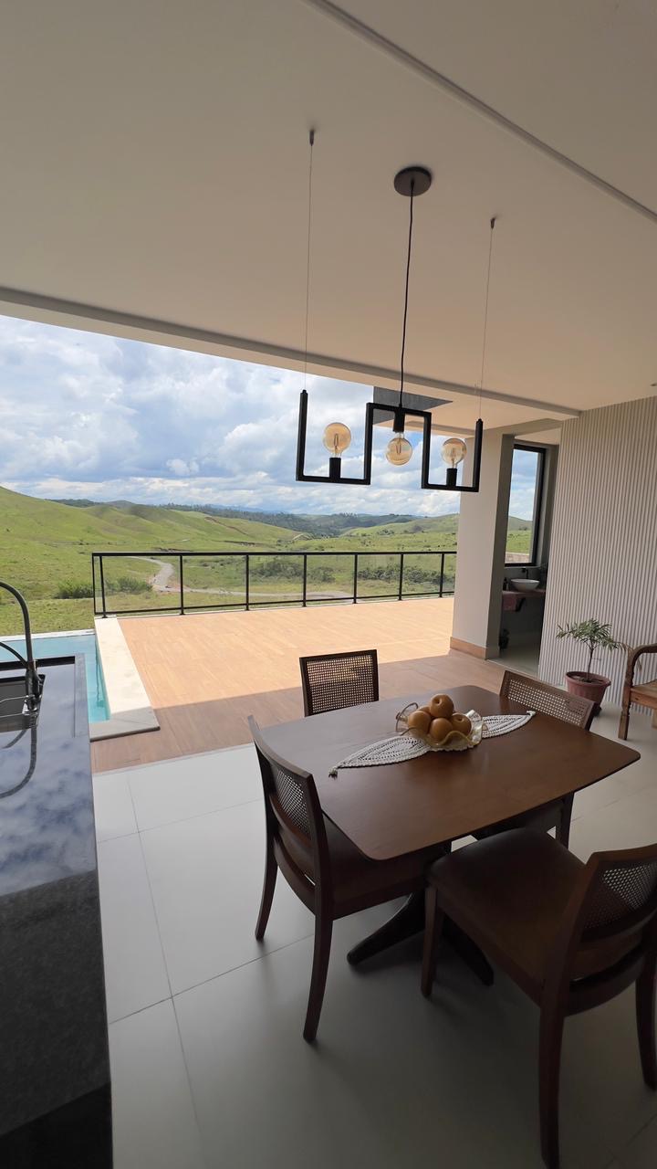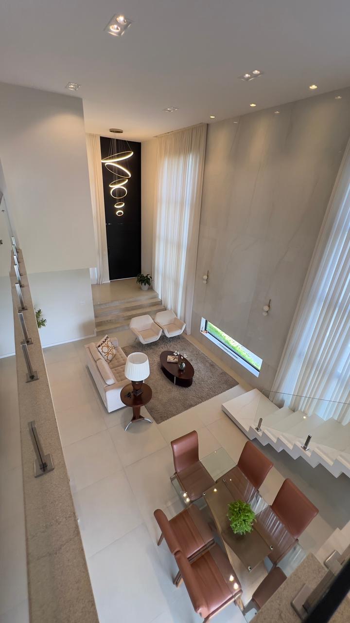 Magnifica casa totalmente moderna com projeto inovador composta por 03 amplas suítes sendo duas com sacada e uma suíte master com closet e sacada virada para uma vista exuberante da natureza, sala de estar com o pé direito duplo trazendo uma visão única da área de superior junto com o espaço gourmet, cozinha com ilha e armários planejados, com dispensa, temos também um espaço que pode ser utilizado como sala de tv ou quarto com acesso a varanda lateral da casa, banheiro social, lavabo, área de lavanderia separada, quarto de despejo, quintal com área gourmet com churrasqueira e ilha , piscina com borda infinita virada para uma linda vista da natureza onde poderá ter uma ótima experiência com o pôr do sol, temos também mais um banheiro com lavatório na nossa área externa OBS: Na parte do subsolo tem uma área maravilhosa para fazer mais algumas áreas para compor a área de lazer.